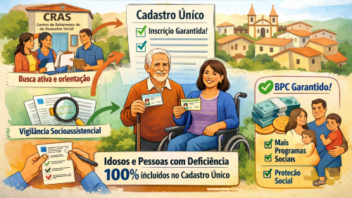 O Cadastro Único é um requisito obrigatório para a manutenção do BPC. O benefício assegura o pagamento de um salário mínimo mensal a idosos com 65 anos ou mais e a pessoas com deficiência que comprovem baixa renda. Quando o cadastro não está atualizado, o beneficiário pode ter o pagamento bloqueado ou suspenso.