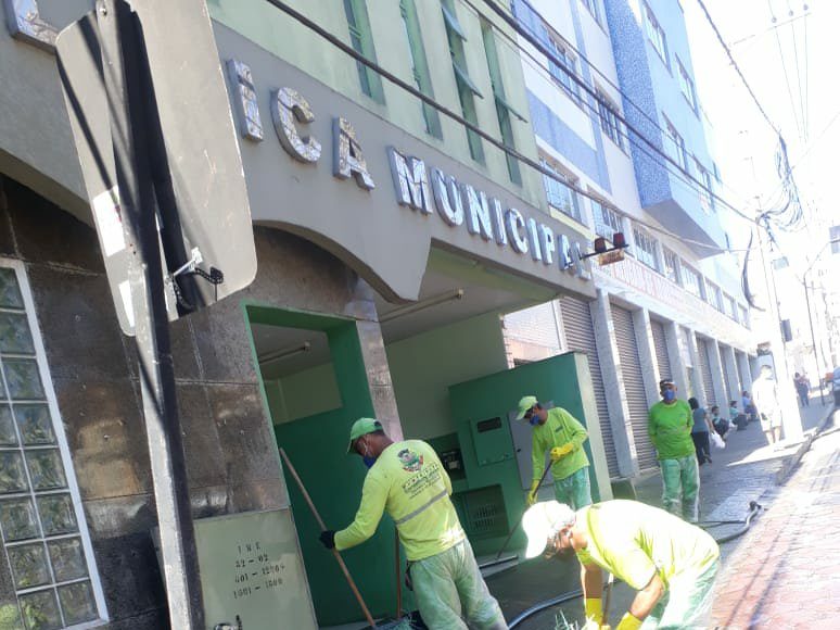 Nesta semana o serviço já foi feito no terminal rodoviário, passagem subterrânea, pontos de ônibus, proximidades de unidades de saúde e praças. Durante a semana outros pontos receberão o serviço, incluindo área em frente ao Hospital de Campanha.