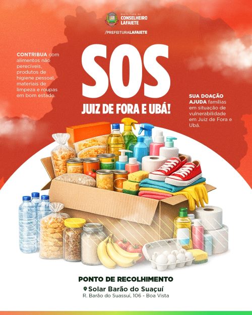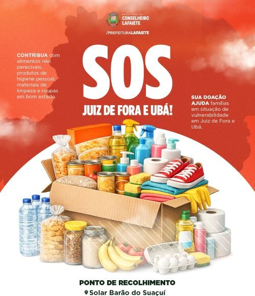 A Prefeitura de Conselheiro Lafaiete lança uma campanha de solidariedade para arrecadar itens essenciais destinados às famílias em situação de vulnerabilidade nas regiões de Juiz de Fora e Ubá, afetadas pelas chuvas recentes que exigem atenção e apoio emergencial.